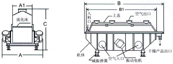 為提高雞精干燥時的流化效果及流化床的運(yùn)轉(zhuǎn)可靠性,我公司生產(chǎn)的流化床加大了沸騰腔的容積,主機(jī)采用框架式結(jié)構(gòu)。
